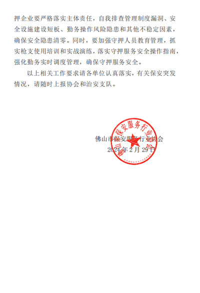 佛山市保安服務(wù)行業(yè)協(xié)會發(fā)布關(guān)于加強全國"兩會"期間保安監(jiān)督工作的通知,為進一步加強社會面治安管控工作,充分組織發(fā)動保安隊伍參與保安服務(wù)廣州,切實助力全國“兩會”安全順利召開。